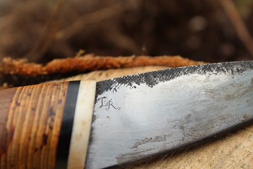 Griffaufbau: Knochen, Micarta, Birkenrinde, Nussholz (aus den Schreinerresten von Neugier, danke!), Knochen.