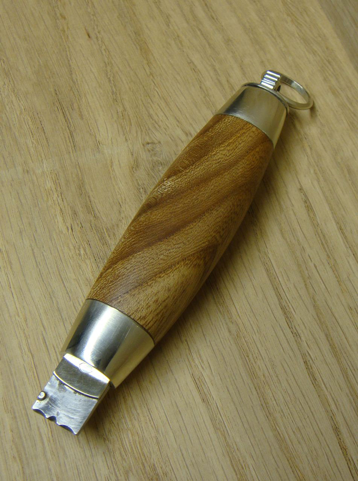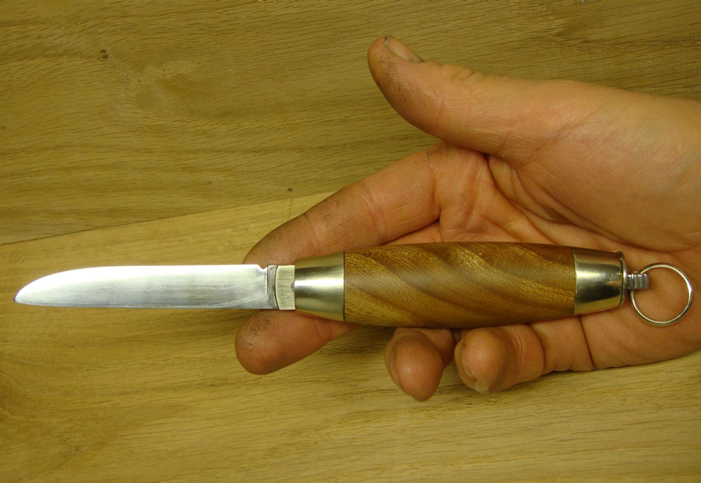 Nicht gross anders als das letzte - Griff ist hier halt Ulme und die Klinge ist simpler 1.2842 Stahl, Länge ist ca. 20cm offen.