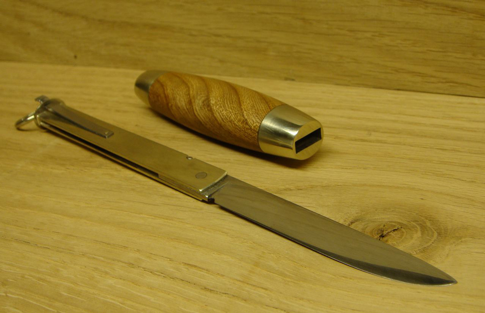 Zieht man das gefaltete Messer aus dem Griff, entfaltet es und steckt es wieder in den Griff?