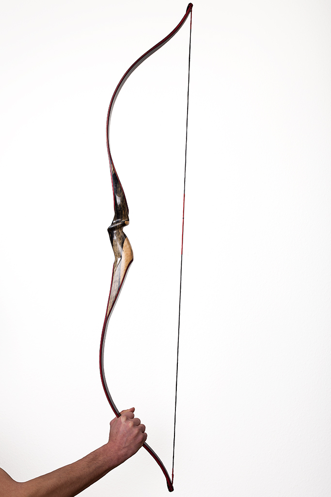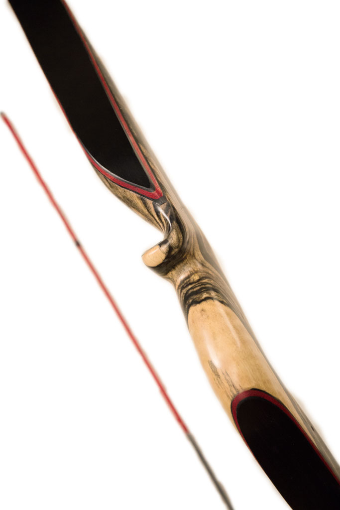 Wurfarme aus: Bambus (partiell getappert),Carbonkern, Schwarzglas an Bauch und Rücken, die Flanken mit Wasserbeize rot eingefärbt