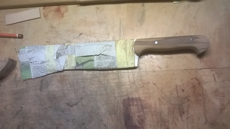 Bei feststehenden Messern mache ich es gerne so, dass ich die Griffe nur planschleife und die Klingenseite fertig mache.