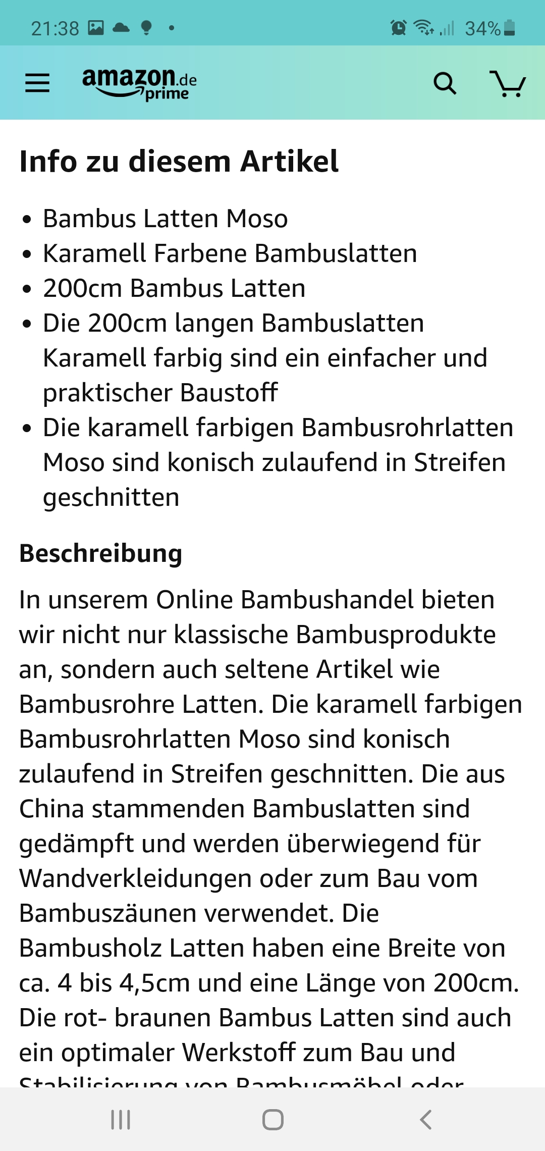 Noch ne andere Frage kann man die bambuslatten bei Amazon für ein facing nehmen
