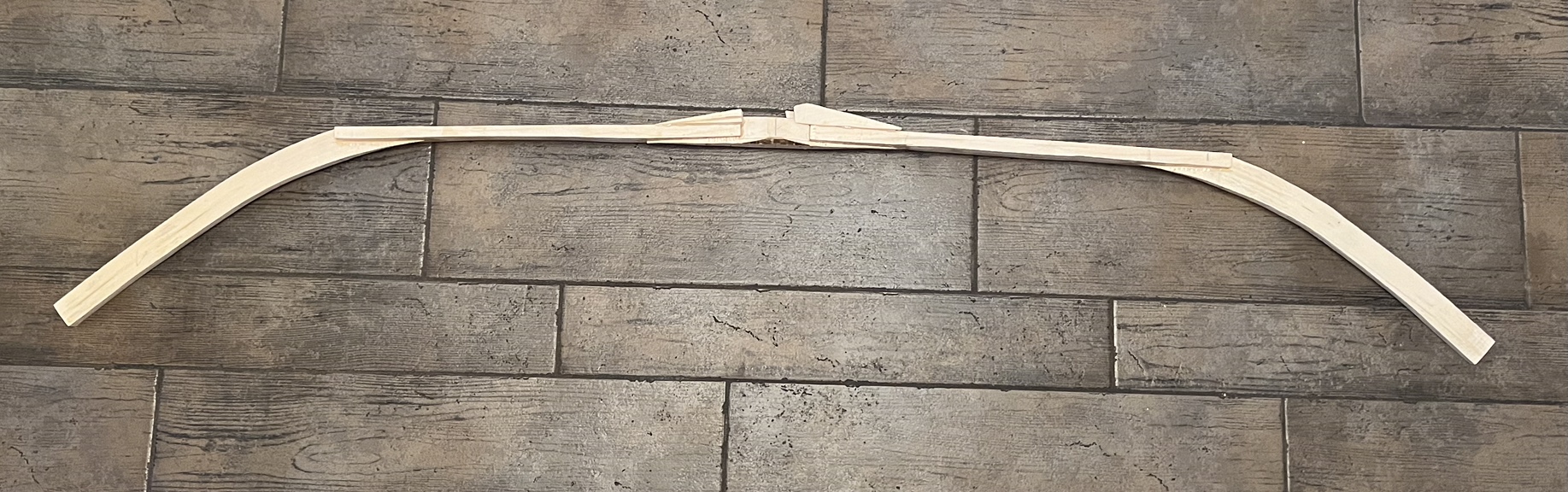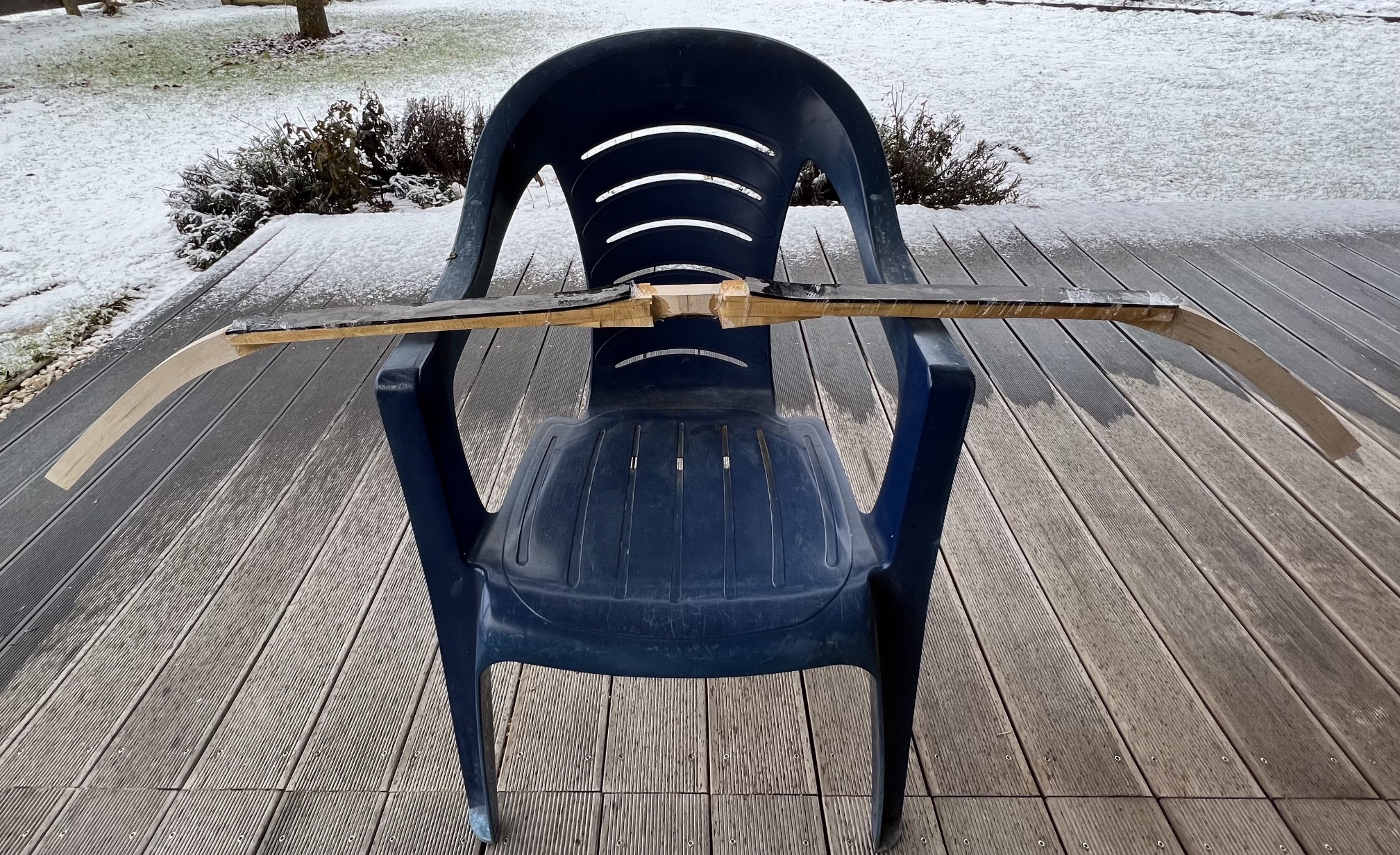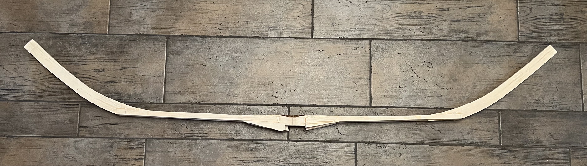 Heute noch ein paar Kuhhornstreifen gebogen, den Griff geplant, den Spleiß vorbereitet und mit der Bandsäge ausgeschnitten, weitere Hornteile vorbereitet, den deflexen Wurfarm im mittleren Bereich dünner geschliffen und mit Hitze ausgebogen, die Teile über dem Auslass der Wohnraumbelüftung platziert, zum Nachtrocknen über Nacht.