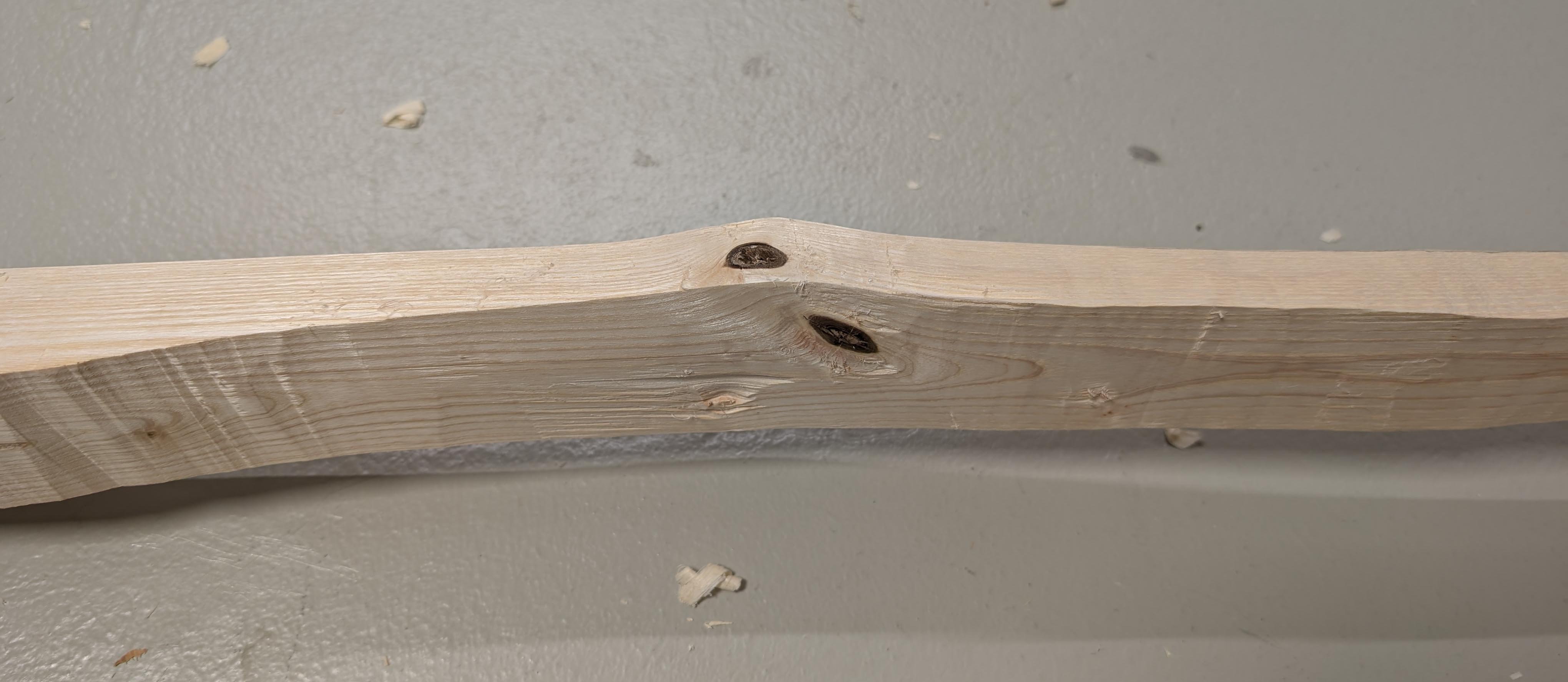 An einer Seite befinden sich ein paar kleinere Äste. Ich hoffe diese im finalen Bogen umgehen zu können. Die andere Seite sowie die Außenseite sind astfrei.