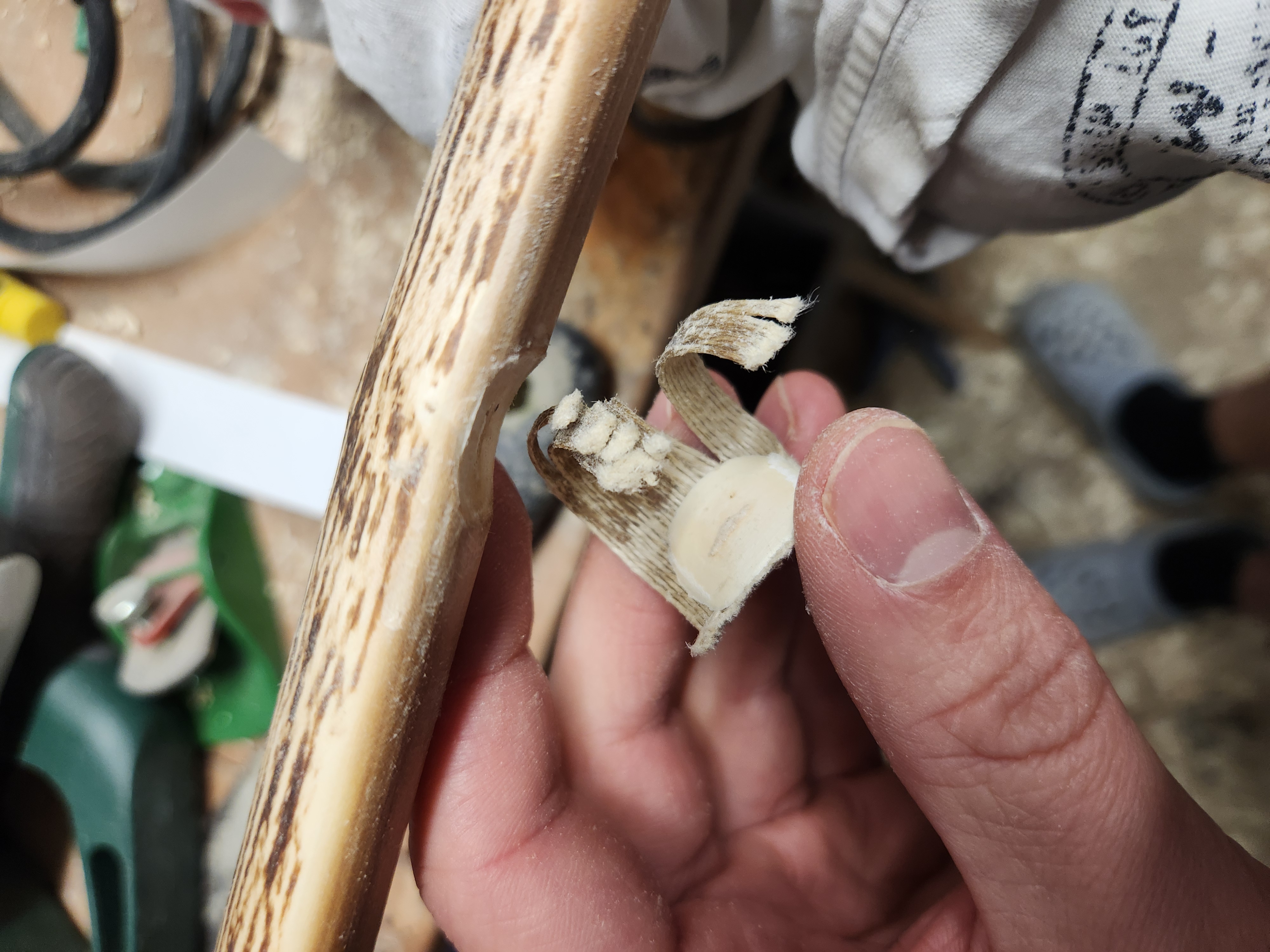 Nein ist kein Geweih. Das ist ein Stück Hartriegel von dem dickeren Rohling.