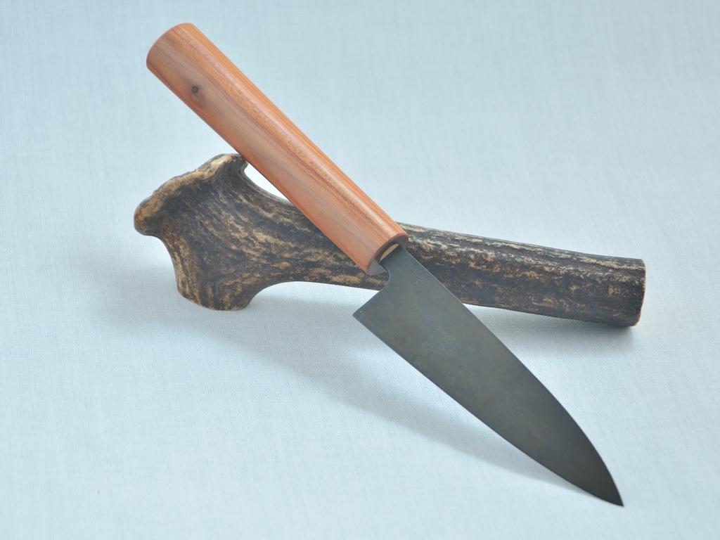 Vor 11 Jahren habe ich eines meiner ersten Küchenmesser gemacht, eine kleines Gyuto, dieses Messer ist ist aus SB1 und bei mir im tägliche Einsatz