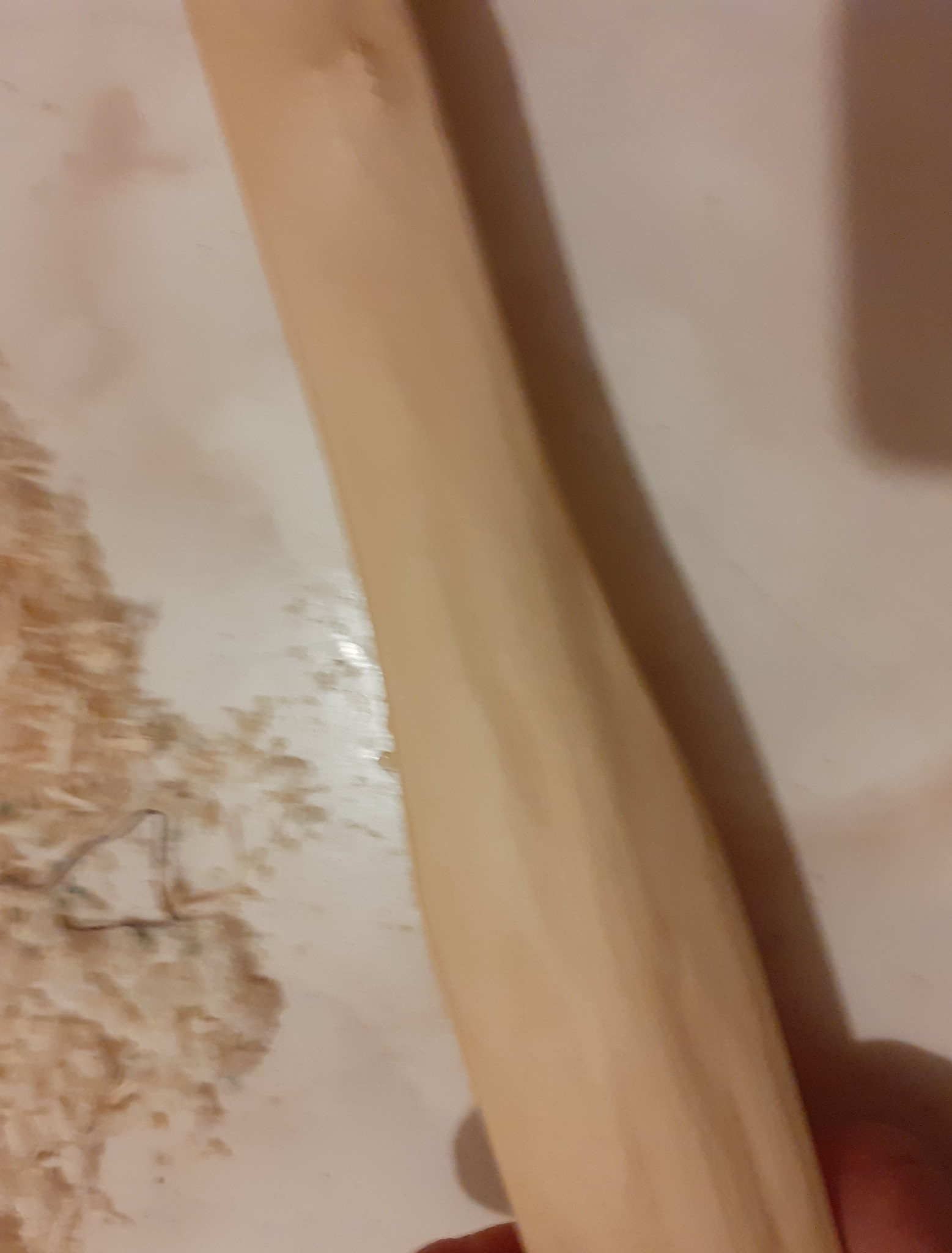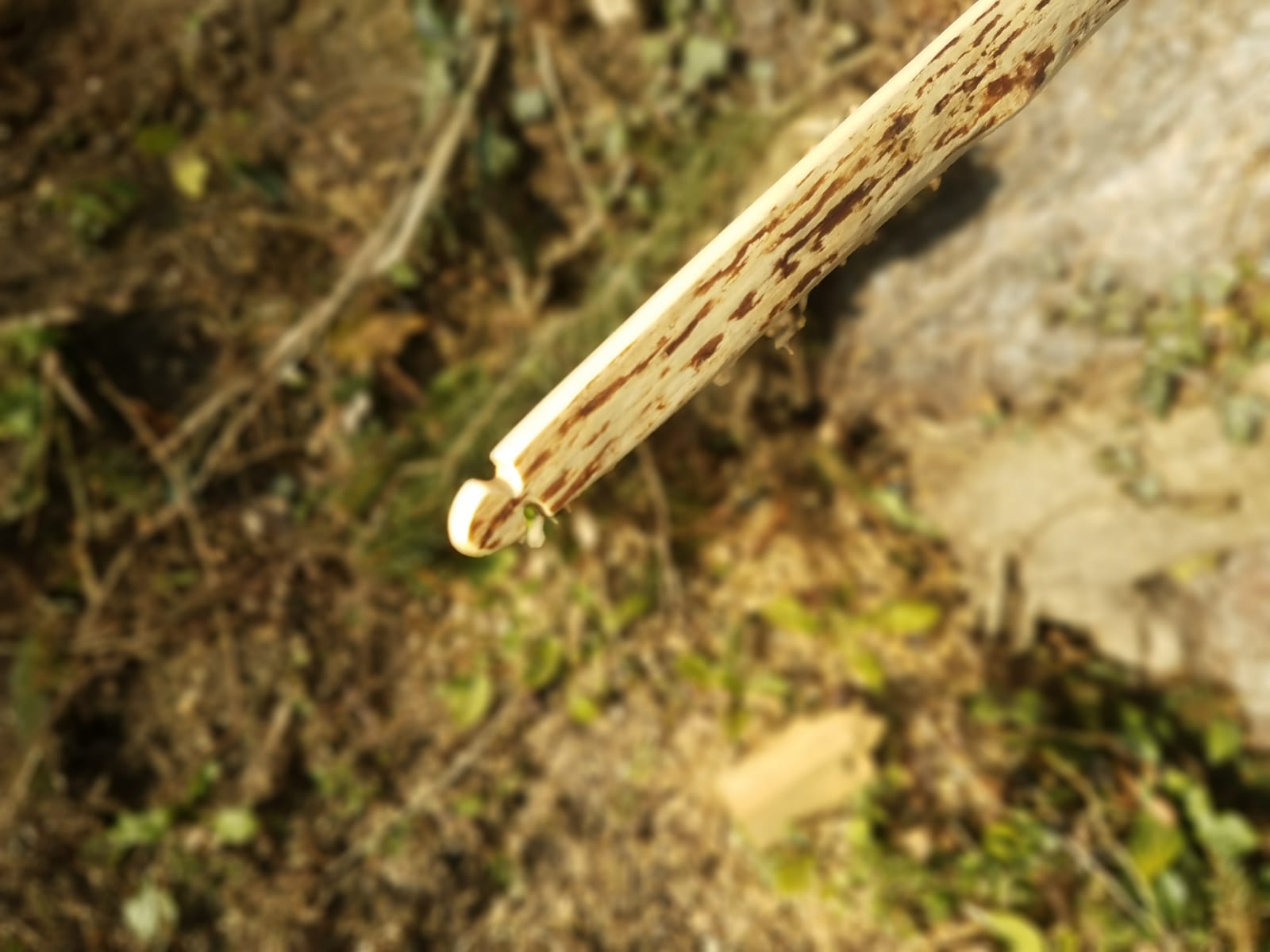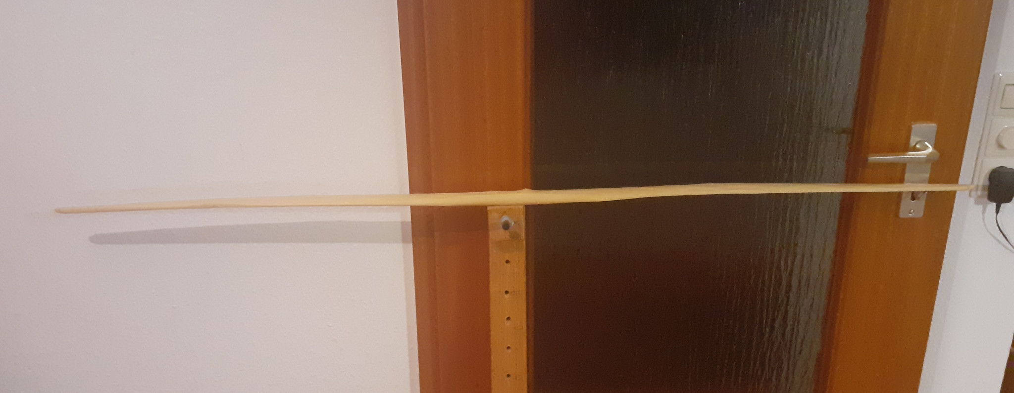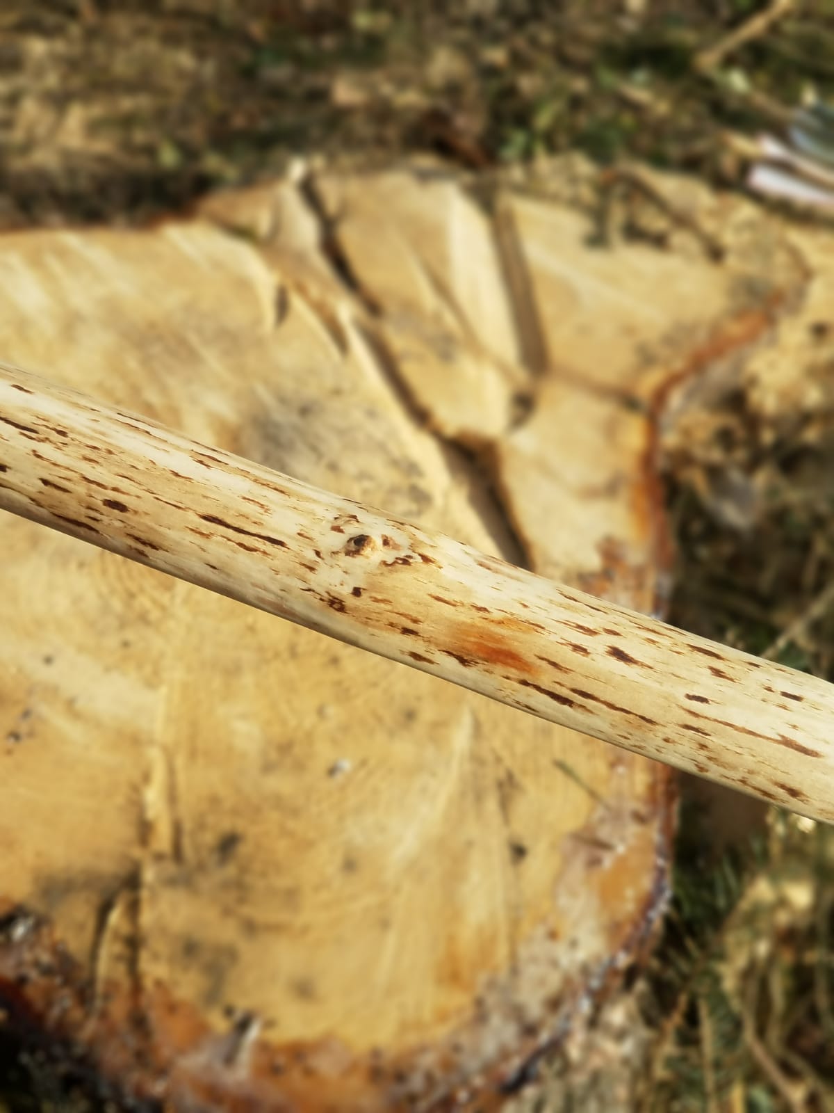 An den rötlichen Stellen war die Rinde schon vor dem fällen vermutlich wg. Fällarbeiten nicht mehr drauf. Zudem etwas Totholz und ein paar Äste. Im Griff am Bogenrücken ist ein Ast der genau zwischen den Gelenken von Ring- und Zeigefinger liegt. Und noch ein paar Details