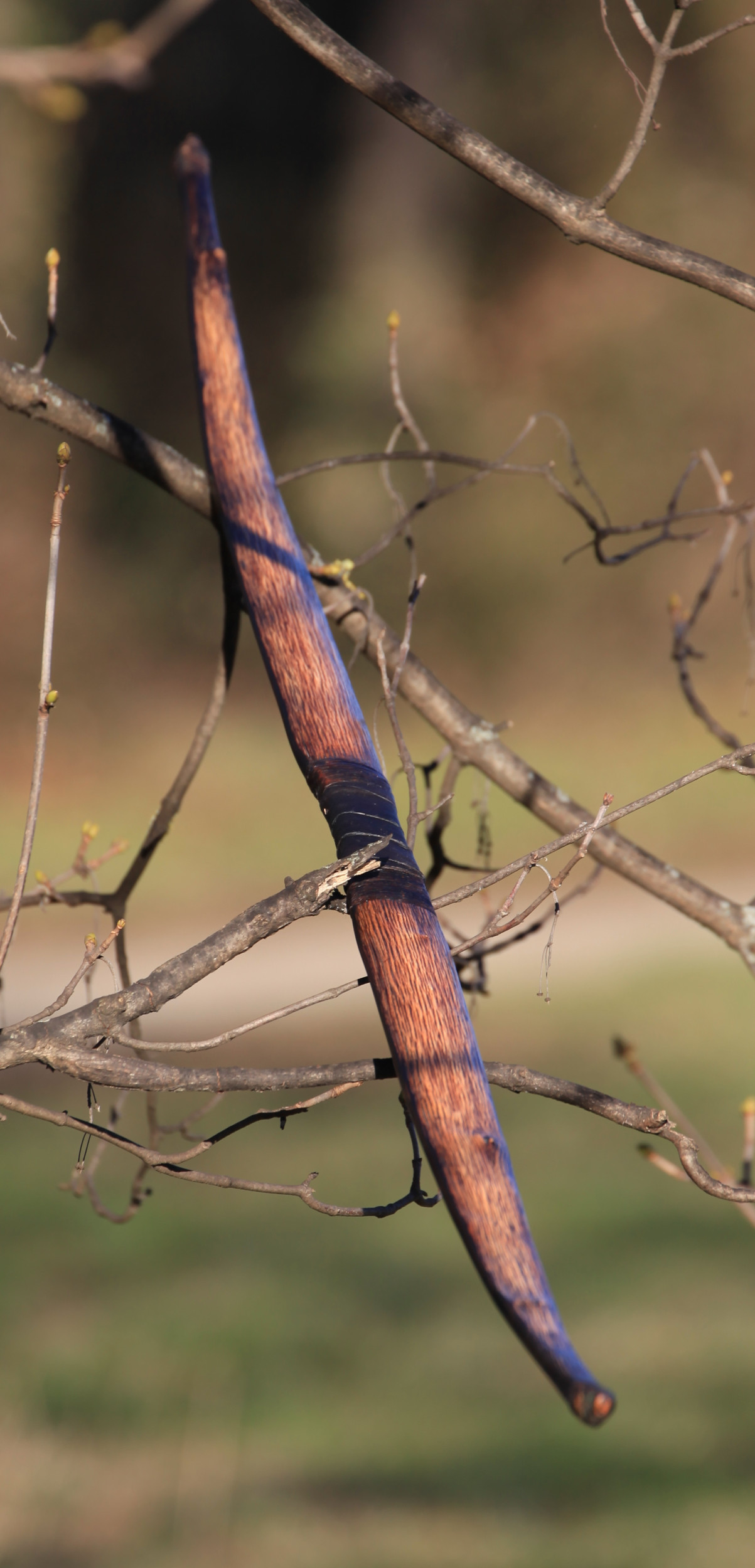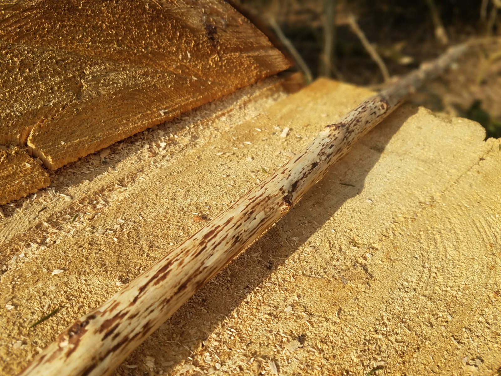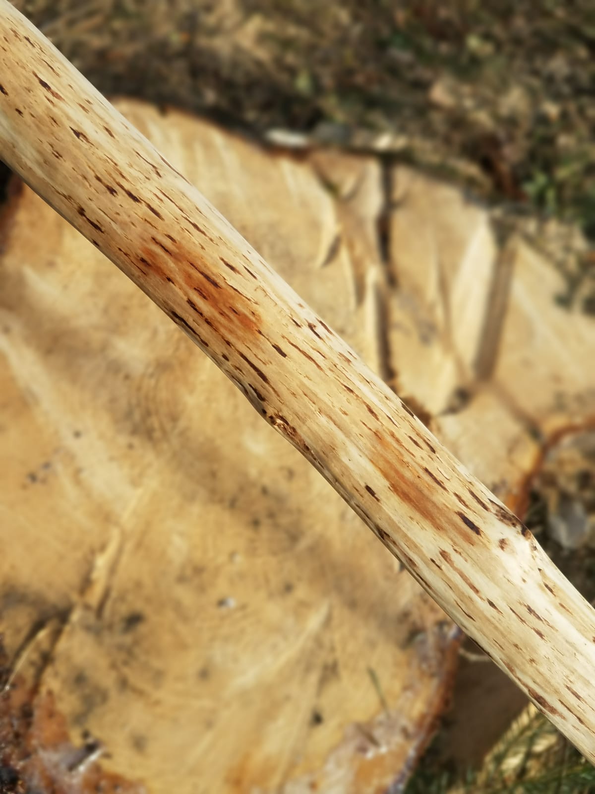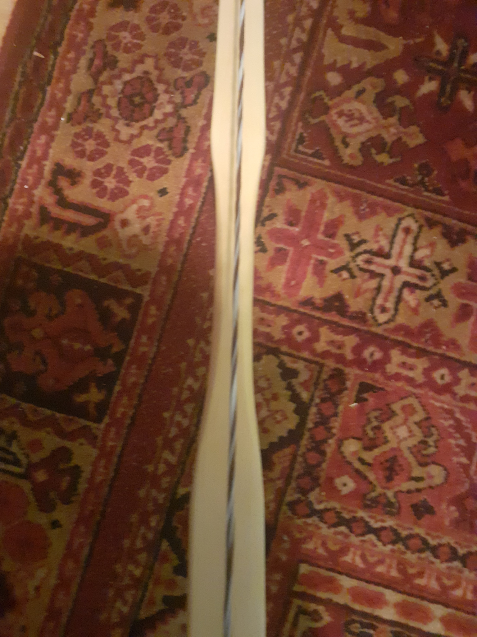 An den rötlichen Stellen war die Rinde schon vor dem fällen vermutlich wg. Fällarbeiten nicht mehr drauf. Zudem etwas Totholz und ein paar Äste. Im Griff am Bogenrücken ist ein Ast der genau zwischen den Gelenken von Ring- und Zeigefinger liegt. Und noch ein paar Details