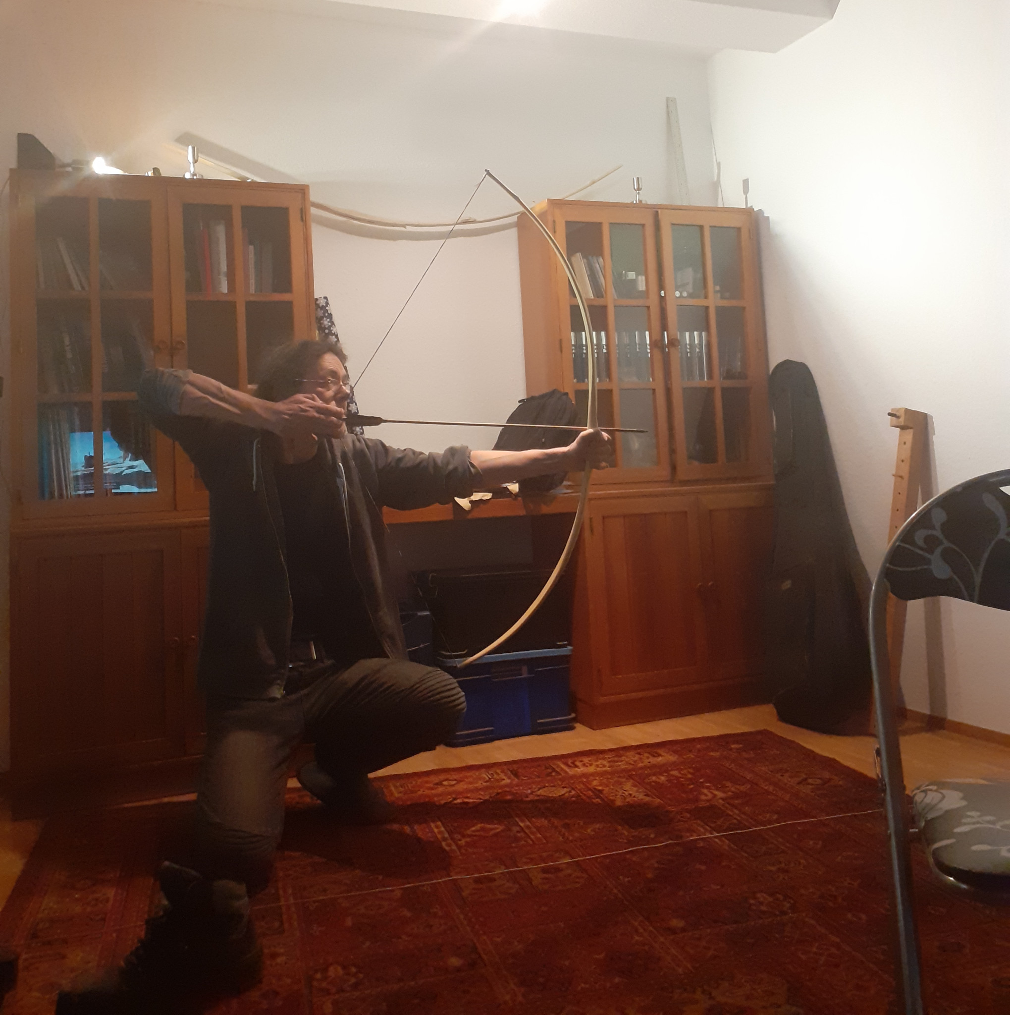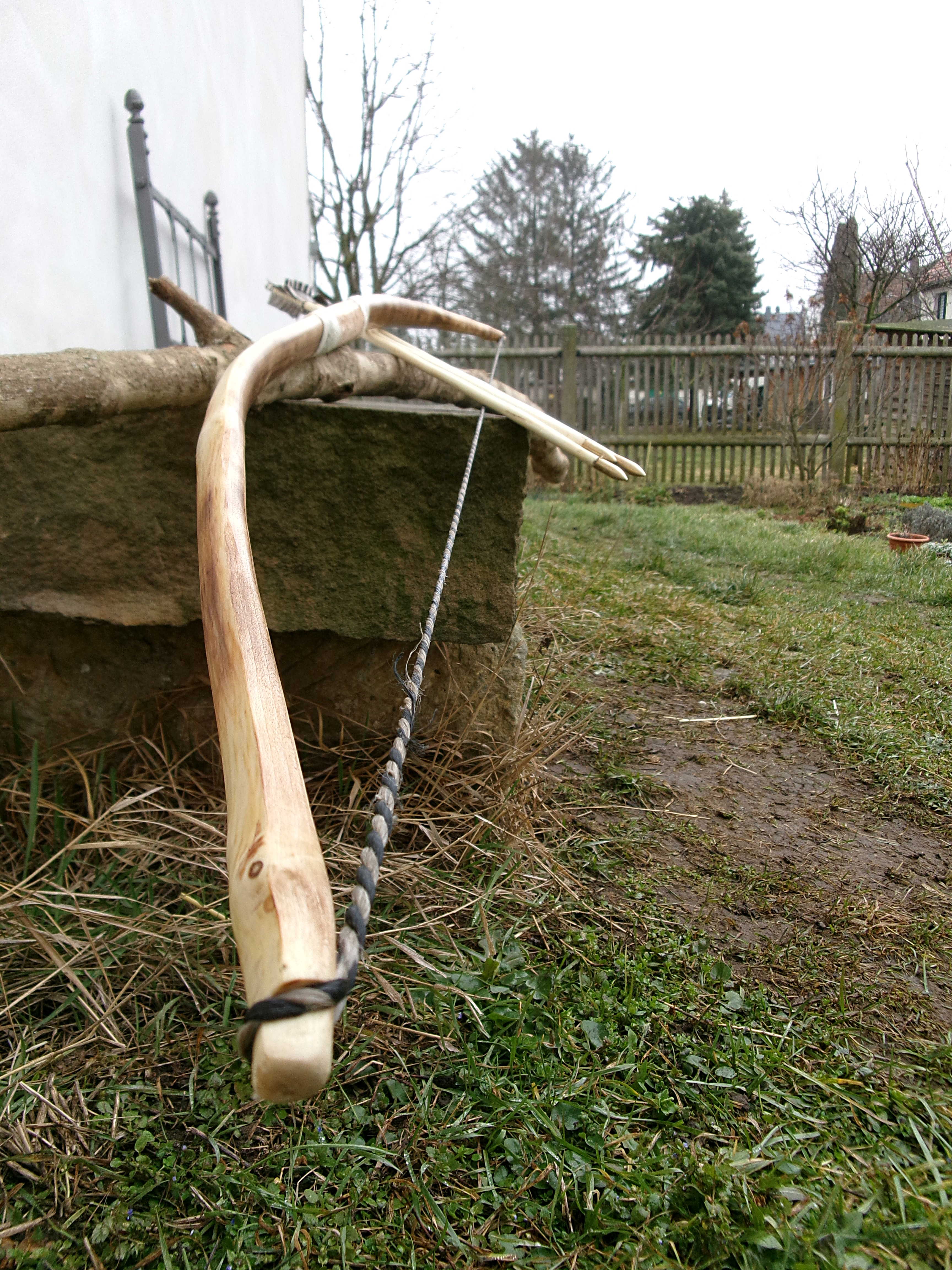 Dank an Benzi fürs gut zureden, hier ist er nun. Mein erster Ahornbogen, aber sehr wahrscheinlich nicht mein letzter. Klein, flink, spaßig. Knautschie aus naheliegenden Gründen, und Spalter, weil er heute beim Schießen auf einen Geräteschuppen ein Brett gespalten hat (ca. 15 m, mit den gezeigten Weidenpfeilen).