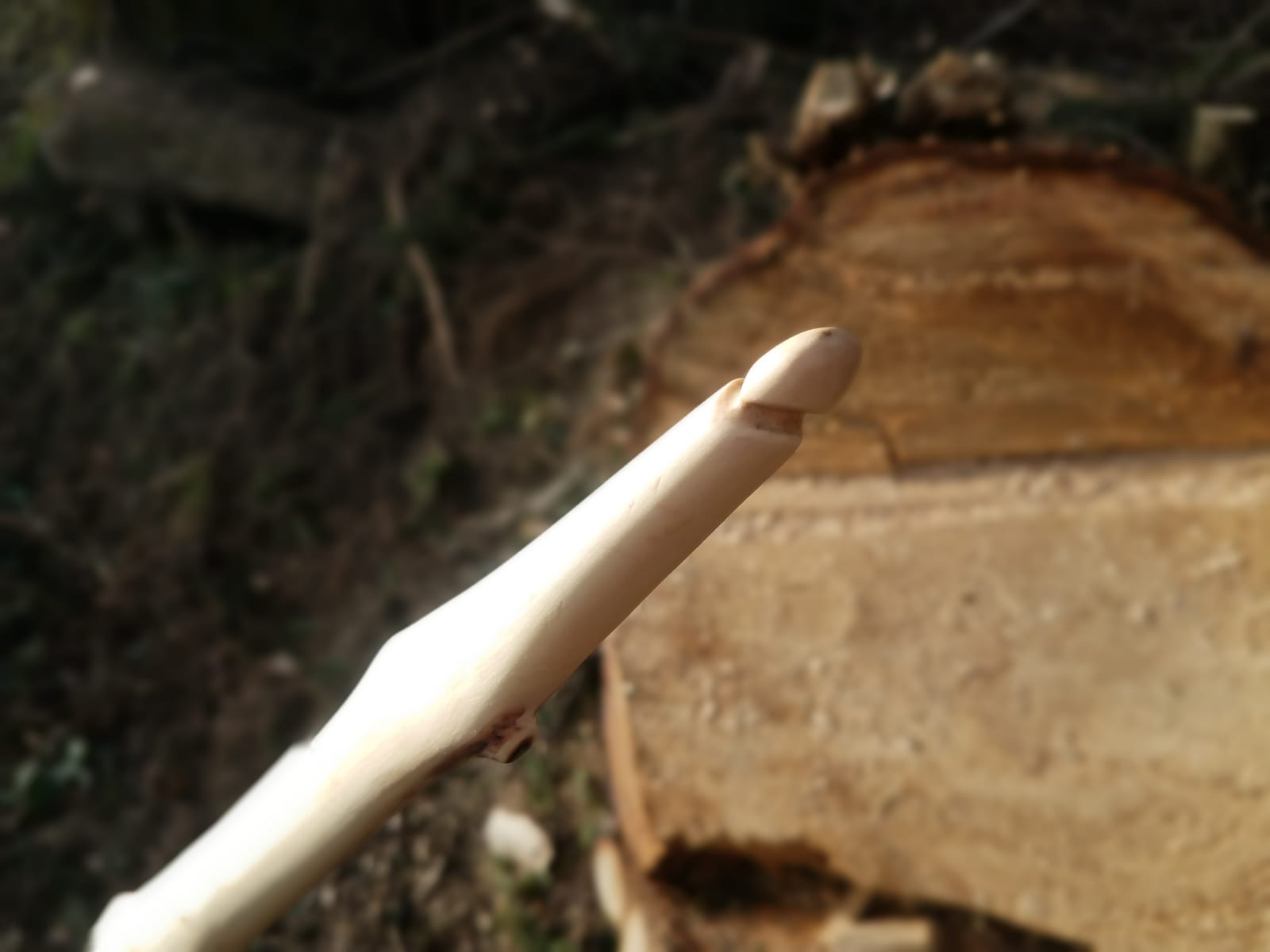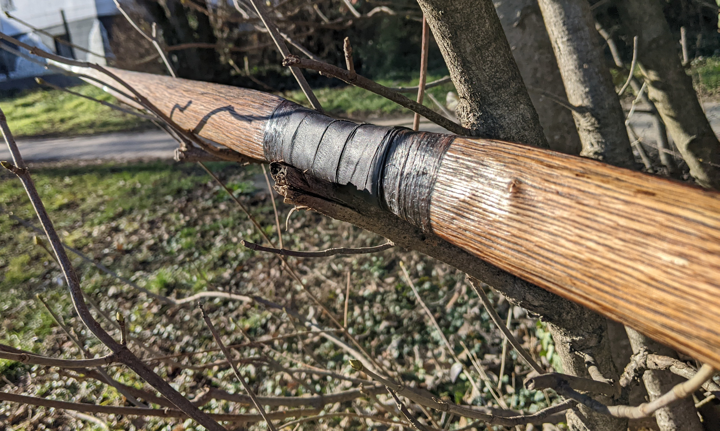 Dunkele Stelle vom Richten mit der Hlp. Dort ist auch noch ein bisschen Bast erkennbar. Direkt darüber ist der Griff.