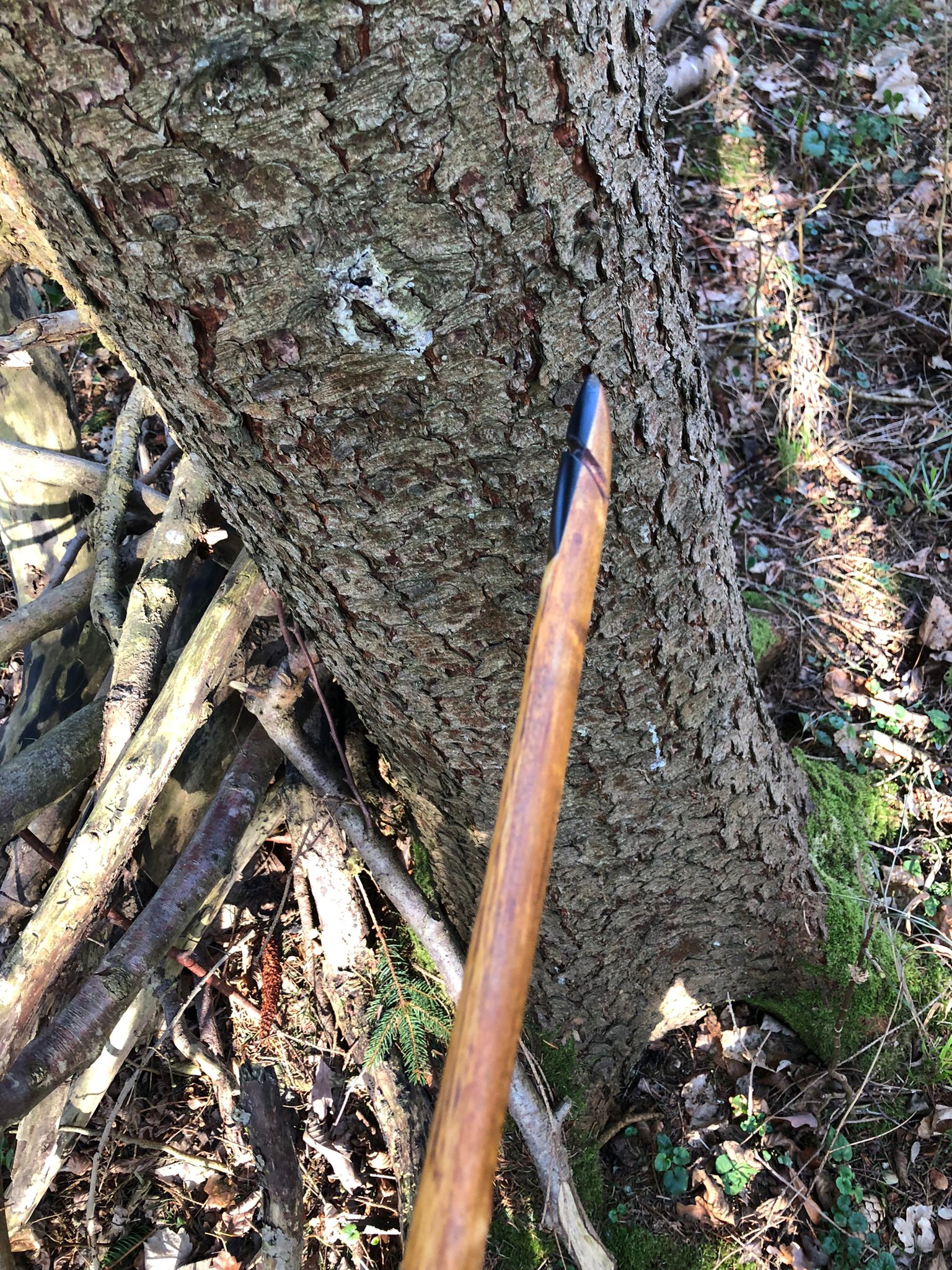 Pfeile aus getemperter Weide, 75 cm, 6,8-mm Bullet Point 70 gr, Graugans, Biopute, Beschnitt frei Hand am Pfeil (noch nachzubessern), Leinenzwirn, Schelllack, zwischen 25 und 27 g