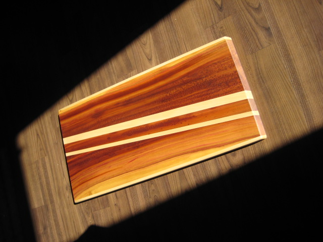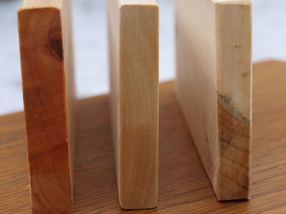 Nun die Stirnholzseite aller drei Brettchen. Das Holz wurde nur nass gemacht, weil man Schneidebrettchen nicht lackieren sollte.