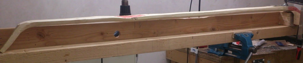 Beim Pfaffen hab ich noch ein 30 cm langes Reststück aus dem gleichen Stamm im Griffbereich aufgeklebt - der Bereich war zu dünn.