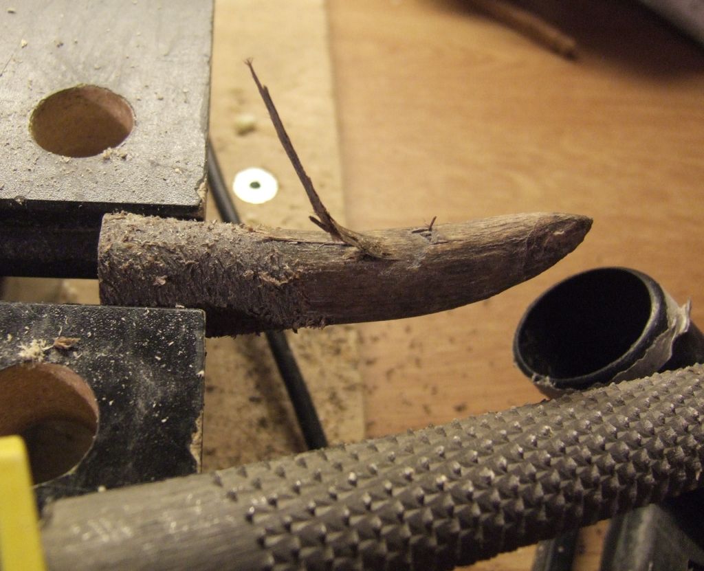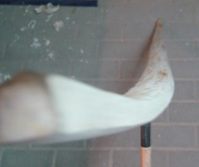- mit einem konischen Werkzeug (das es beim Biber-Baumarkt gibt) das Horn dann weiter ausgehöhlt. Das war aber das falsche Werkzeug, eher ein Entgrater der schlimmen Gestank verursacht. Die o.g. Anleitung empfiehlt eine konische Raspel