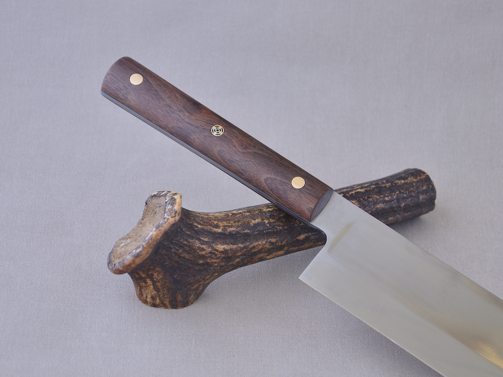 Deer Griff des zweiten Messer ist Schwarznuss, diesmal sehr lokal geerntet. Zwei Straßen bei mir um die Ecke musste ein morscher Baum gefällt werden, und ich konnte einige Stücke abstauben. Ich habe es getrocknet und stabilisiert.