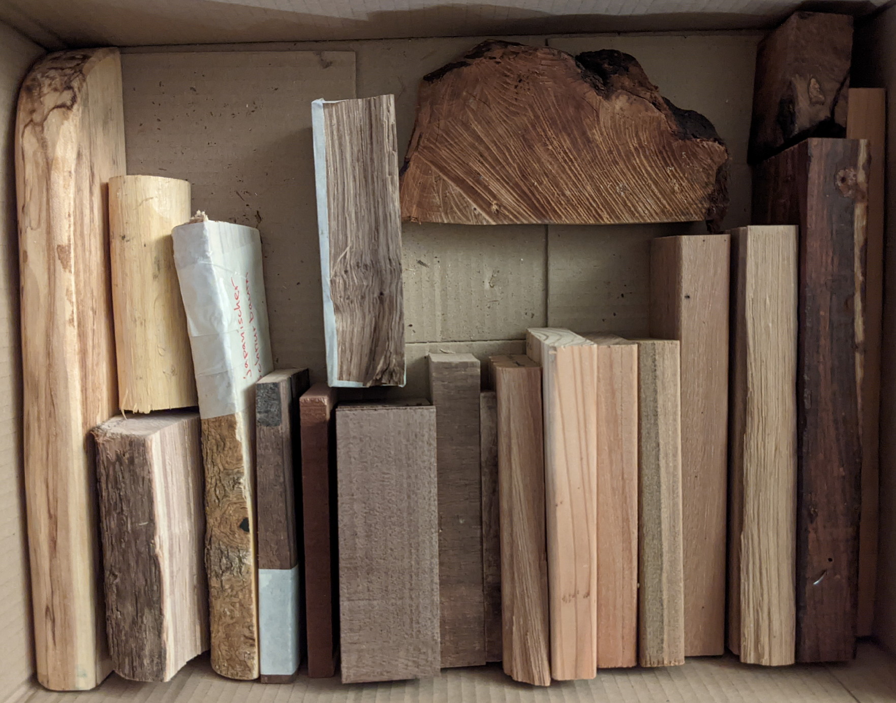 Hier das Paket für Tom Tom. Dabei ist ua. Sheesham, gestockte Birke, jap. Schnurbaum, Flieder mit teils rosa Holz uvm.