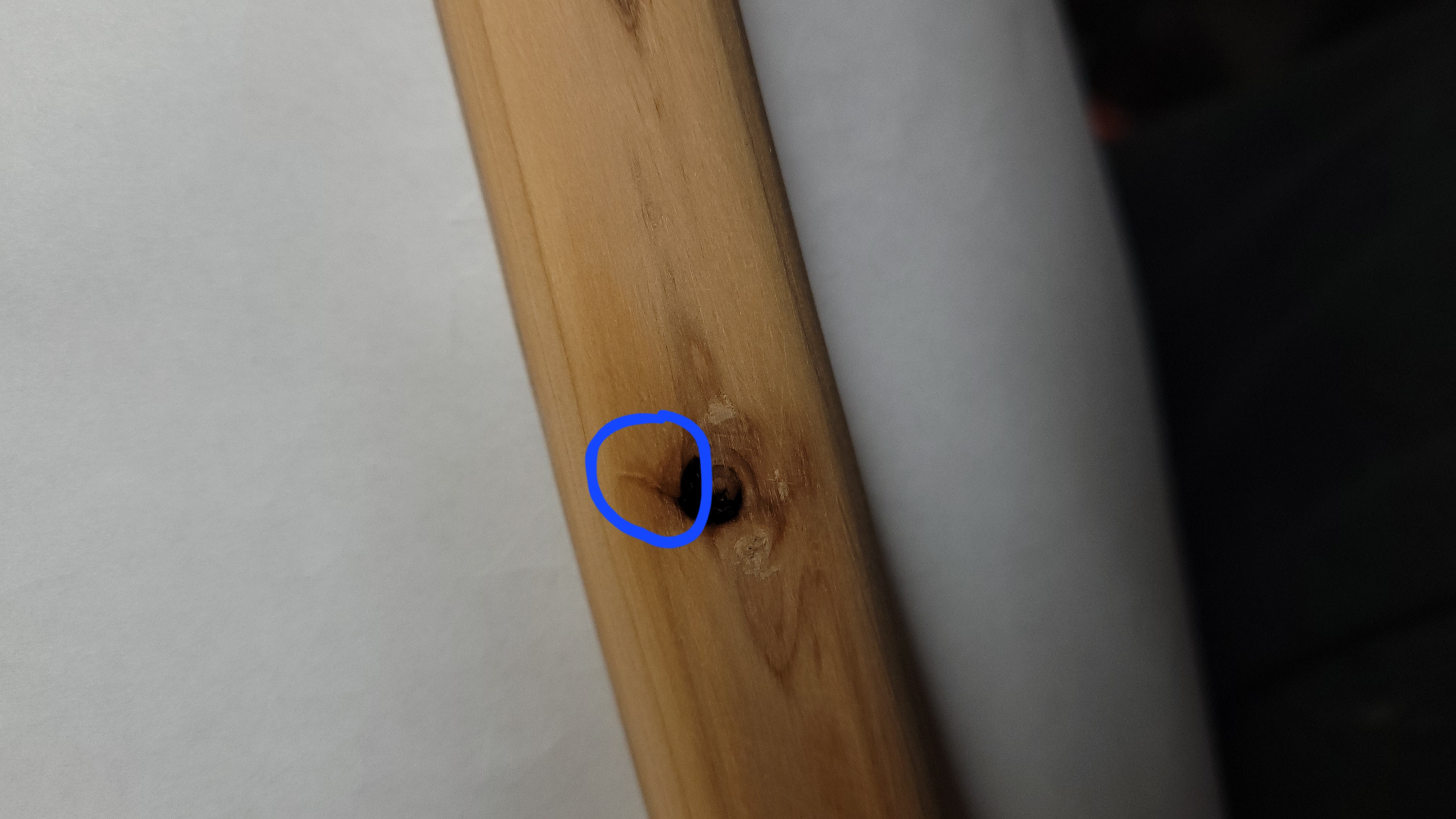 Vorher hab ich aber noch ein kleines Problem mit einer Ast Stelle. Schärfer bekomme ich es leider nicht hin. Damit man es etwas besser erkennen kann hab ich auf die Stelle etwas Aceton gegeben.