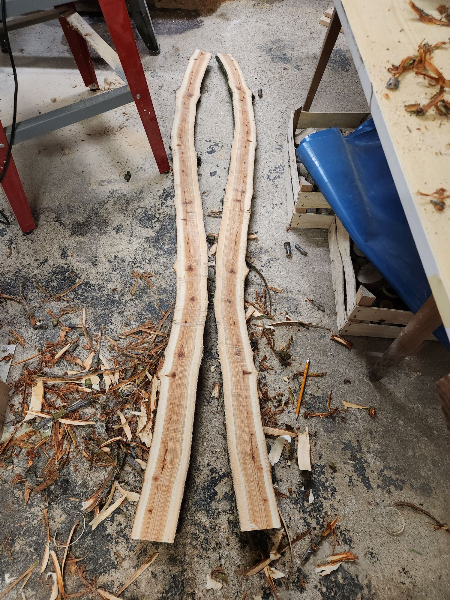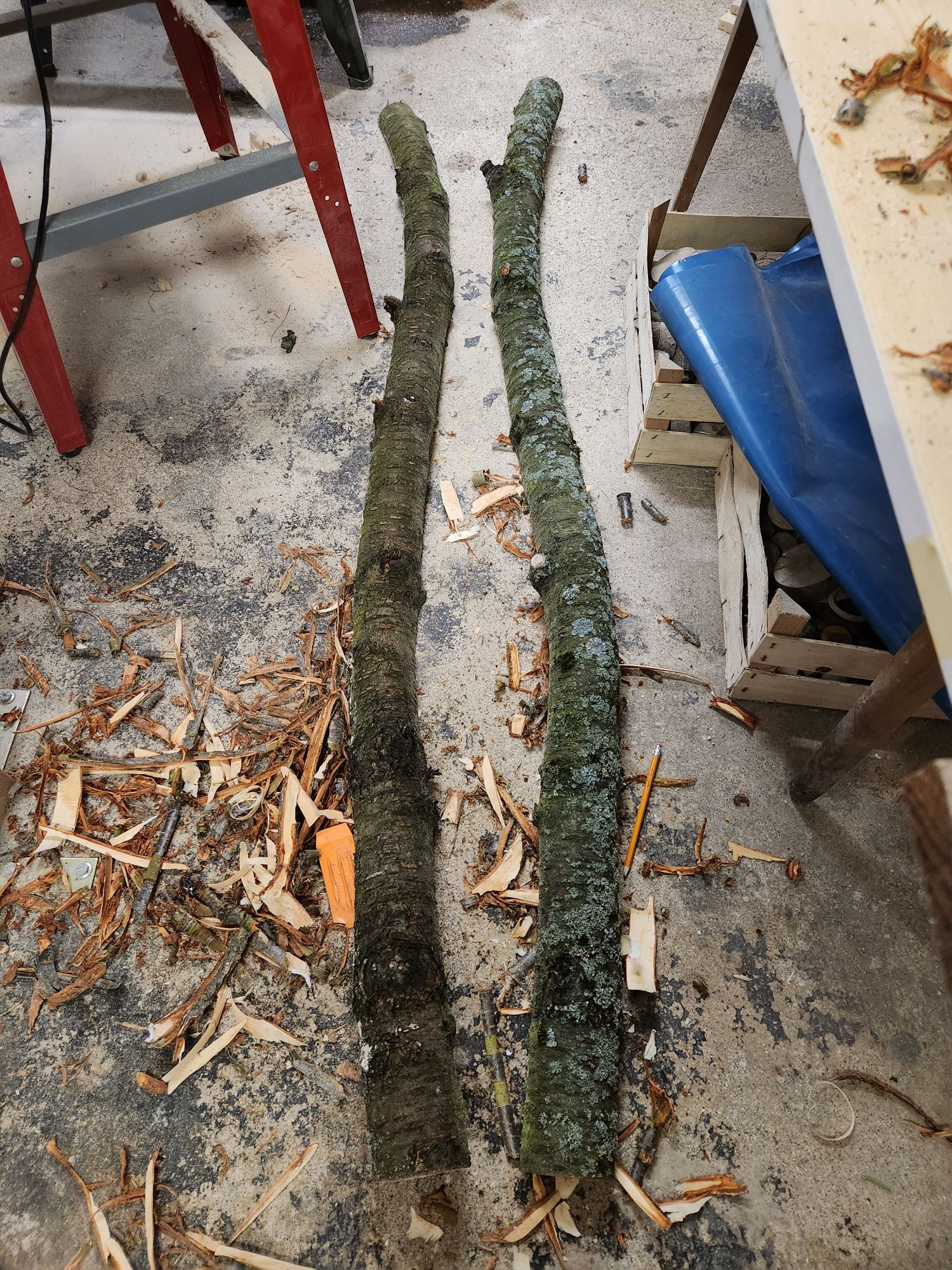 Die beiden Rohlinge vom ersten Baum sind stark verastet und ungerade, aber da es sich um eine Plantage handelt war mir schon im vornherein klar dass es eine Herausforderung wird. Beim zweiten Baum durfte ich dann noch einen dickeren Ast ernten. Da sollte man schon was draus machen können